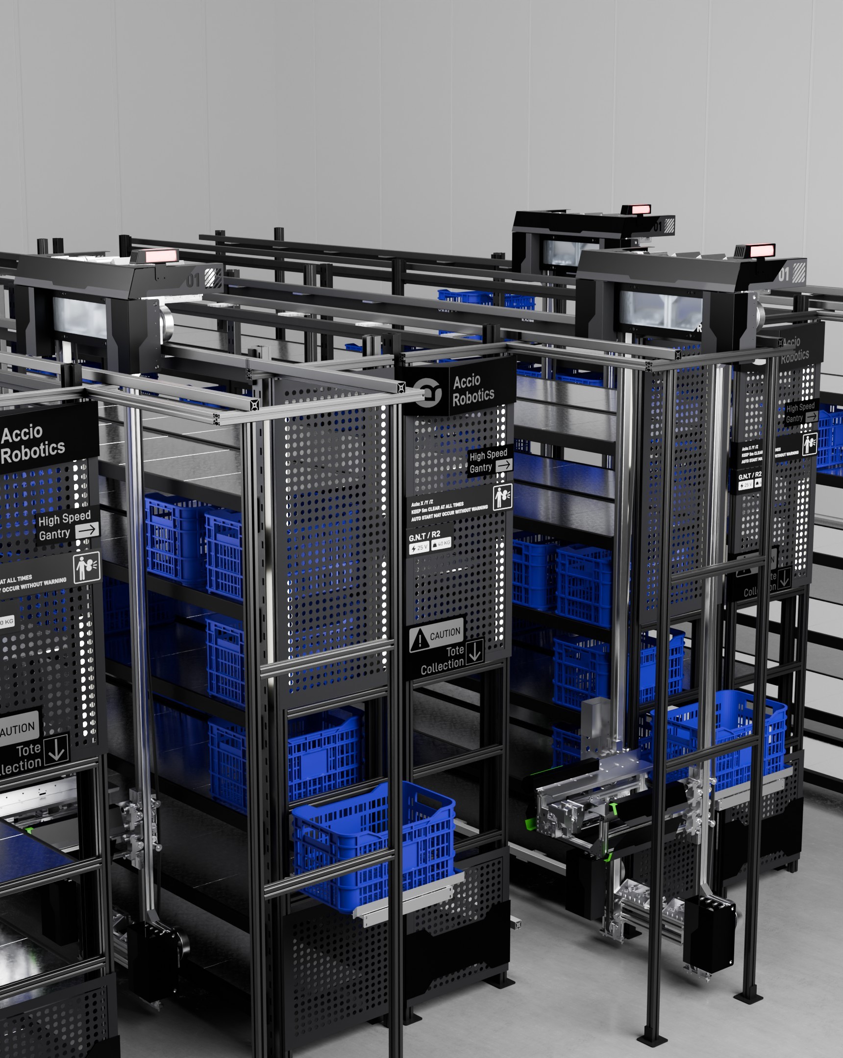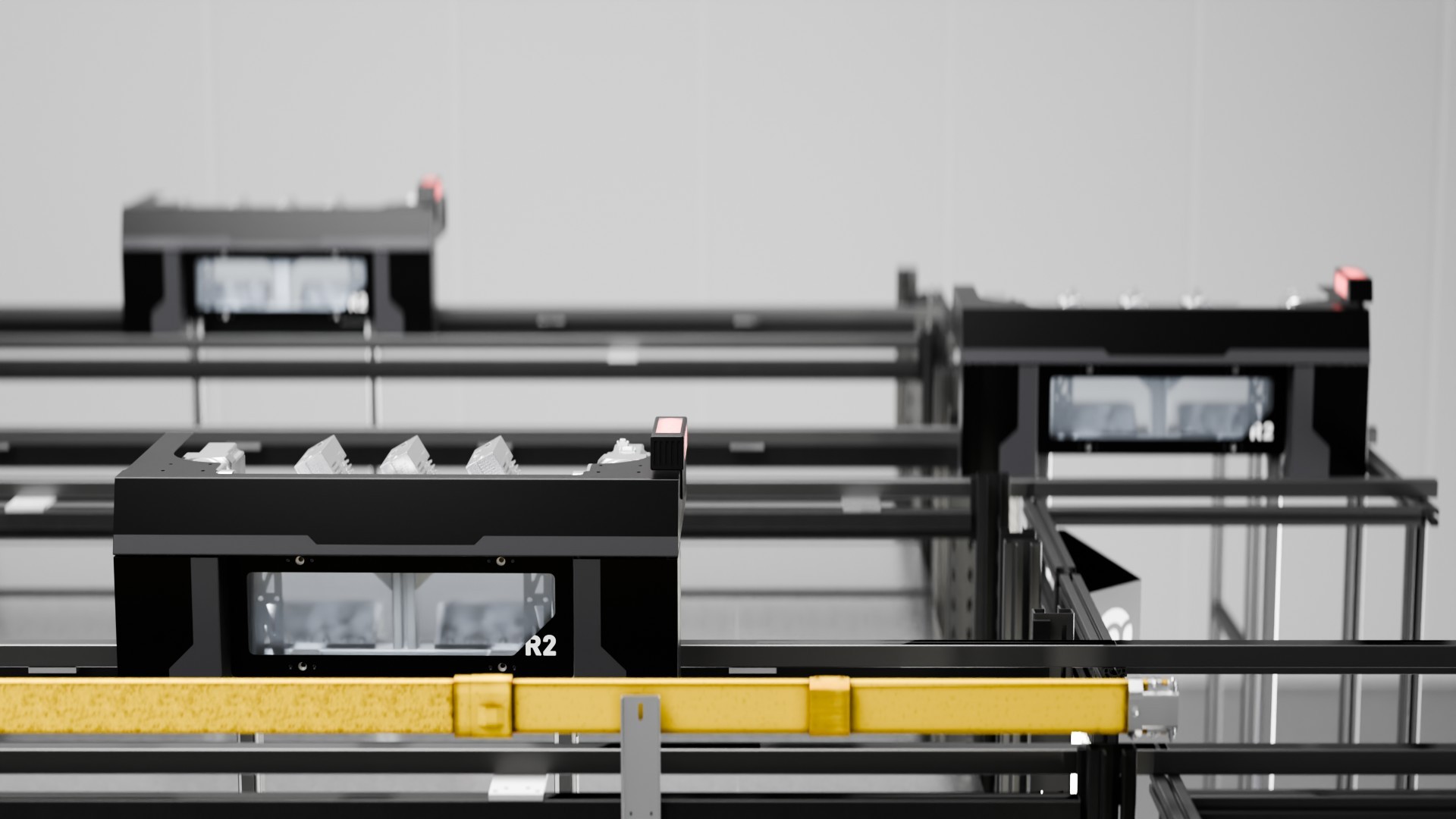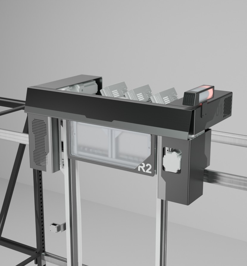 The project involved designing the exterior architecture of a gantry-based robotic system developed for dark store environments, enabling rapid and efficient order fulfilment. The robot operates on an overhead gantry framework, allowing it to retrieve and transport goods across dense storage grids while optimizing spatial efficiency and delivery speed.