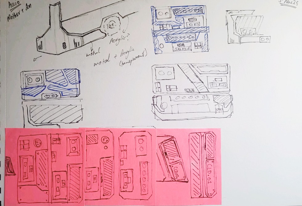 After setting on the design style I started on the concept sketches, exploring housing forms, panel integration, and service accessibility while aligning with engineering constraints.